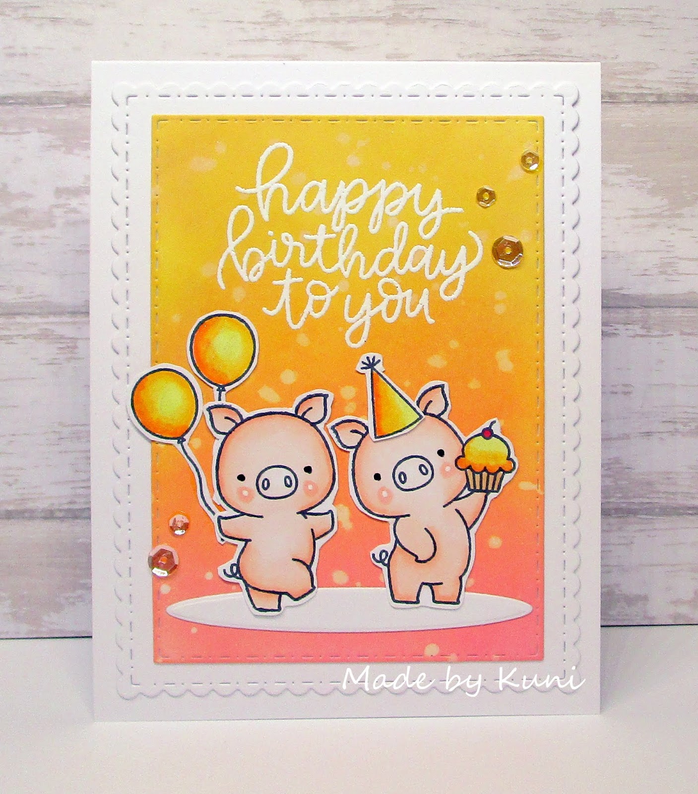Who doesn't love watermelon in the summer! When I was a kid my friends and I would spit the seeds out into the grass as we devoured our watermelon. I love that the base of this card is a slice of watermelon with a nice healthy bite out of it! That penguin is just as cute as can be and I love how he has gotten seeds everywhere!